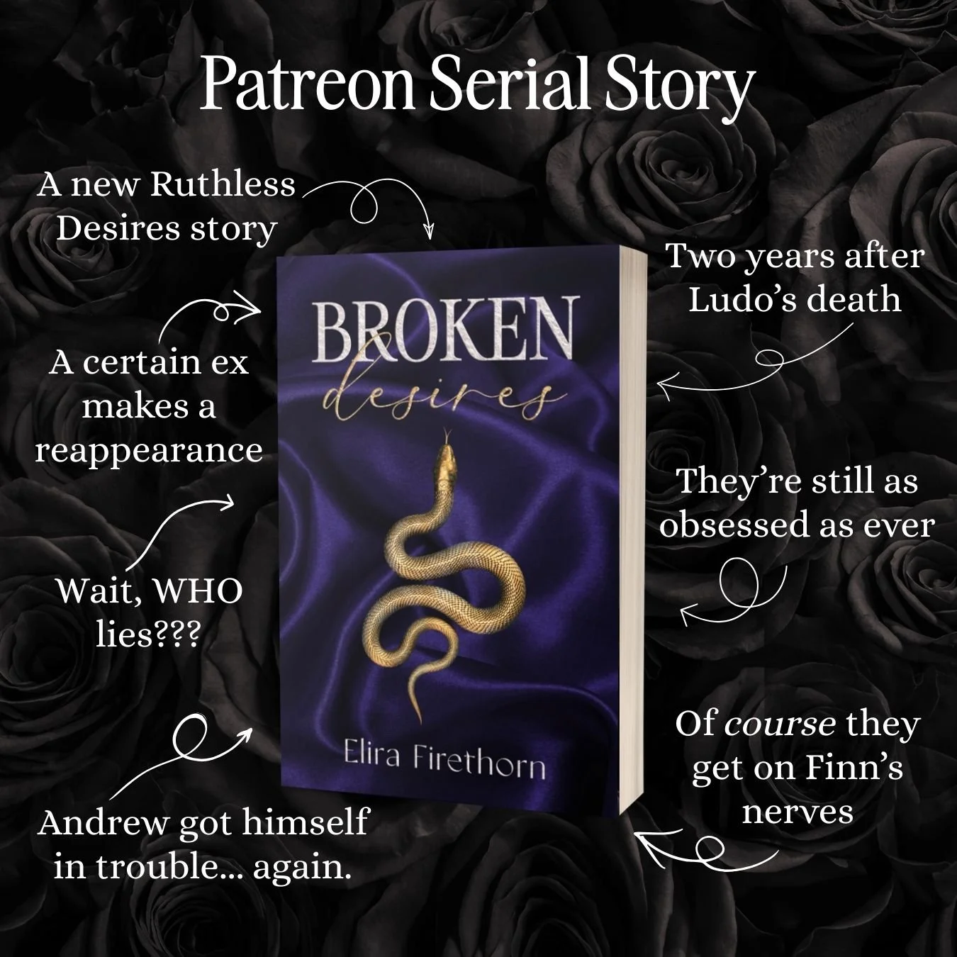 Patrons get early access to Broken Desires. It will be posted in my Patreon as I write it, and once it’s done, it’ll be published on retailers.